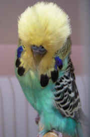 Alan Adams, last years winner in this section, judged the 37 Crests and awarded the adult C.C. to last years winner the Tufted Light Green cock of Mick Widdowson; a large bird of good size and shape and staged in good condition. Dave Moss was second with a quality well balanced Circular Opaline Cobalt cock but slightly ticked. The junior Daniel Norman was third with a Circular Dominant Pied Opaline Cobalt cock of nice crest and body shape. Daniels Circular Dominant Pied Opaline Cinnamon Skyblue hen was best any age opposite sex.